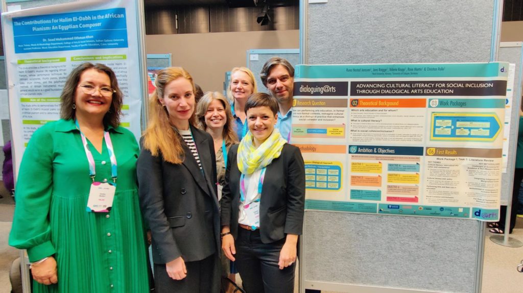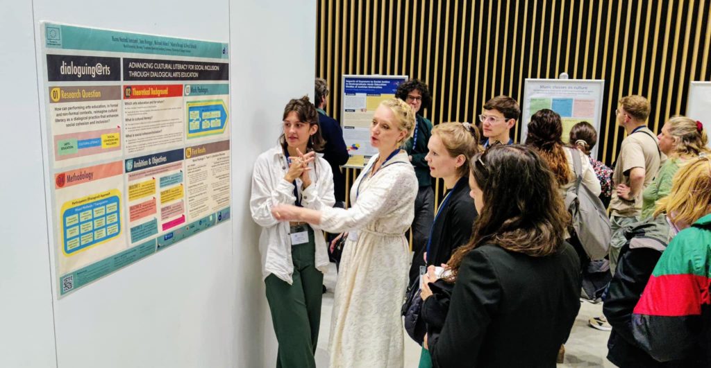 d@rts was also present at the ISME World Conference with a poster presentation. The poster presented the theoretical basis, design and methodology of the project. It gave an overview of the project’s work packages, which revolve around the interrelation of dialogical arts education, cultural literacy and social inclusion.